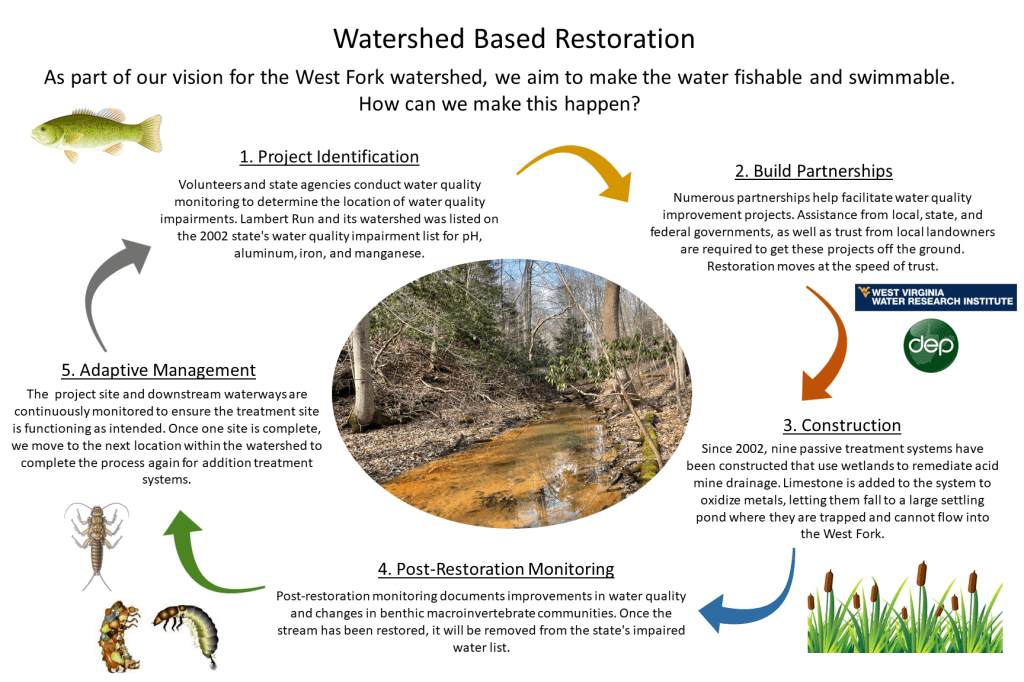 The Guardians of the West Fork, WVU Water Research Institute, WV Department of Environmental Protection, and other partners have worked to improve water quality in the West Fork watershed for over two decades.
