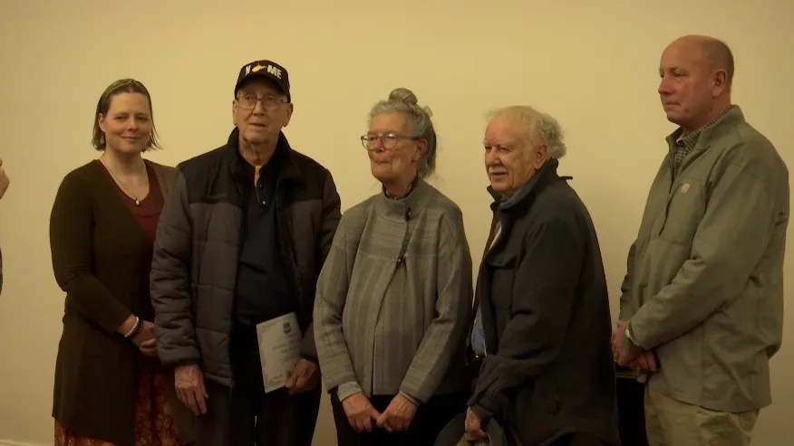 Mel Shafer, WVRI, Board Member Emeritus Mike Murphy, President Lisa deGruyter, Board Member Emeritus Jim Nedrow. Lambert Run Landowner James Allen (photo: WBOY)